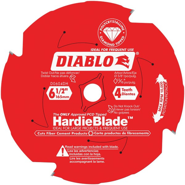 - Diablo HardieBlade 6-1/2 In. 4-Tooth PCD (Polycrystalline Diamond) Fiber Cement Circular Saw Blade