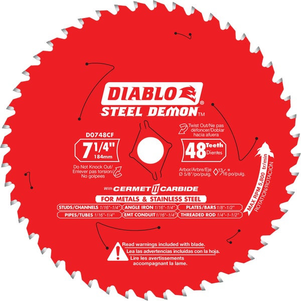 - Diablo Steel Demon 7-1/4 In. 48-Tooth Cermet II Carbide Metals & Stainless Steel Circular Saw Blade