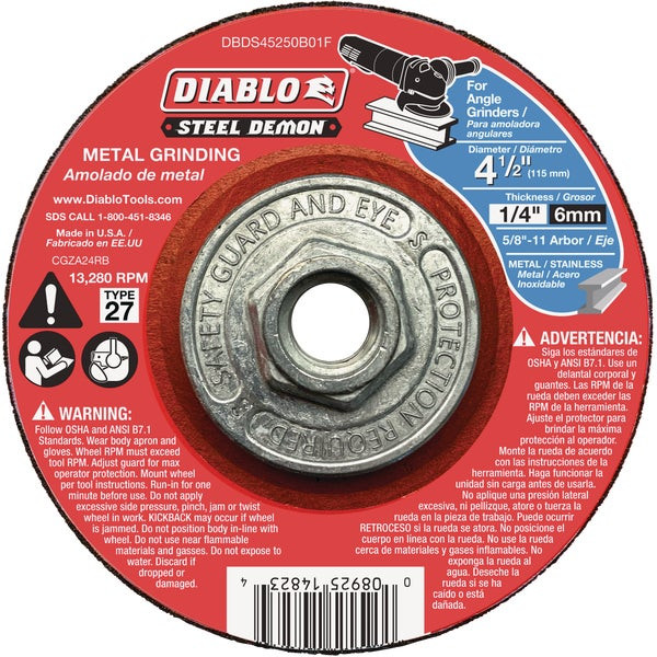 - Diablo Steel Demon Type 27 4-1/2 In. x 1/4 In. x 5/8 In.-11 Metal Grinding Cut Off Wheel