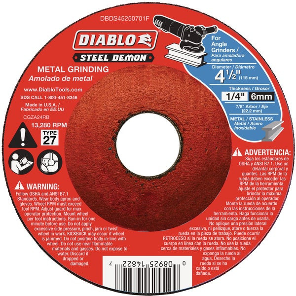 - Diablo Steel Demon Type 27 4-1/2 In. x 1/4 In. x 7/8 In. Metal Cut Off Wheel