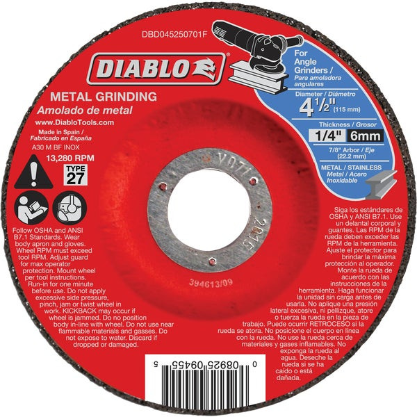 - Diablo Type 27 4-1/2 In. x 1/4 In. x 7/8 In. Metal Grinding Cut-Off Wheel