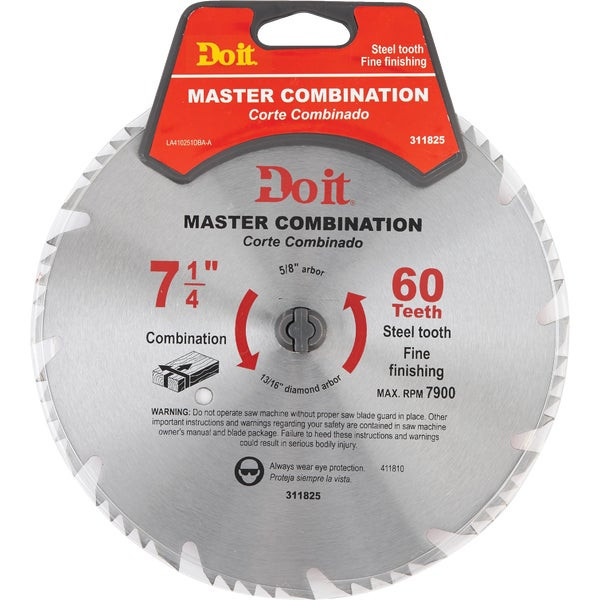 - Do it Master Combination 7-1/4 In. 60-Tooth Crosscut/Rip Circular Saw Blade