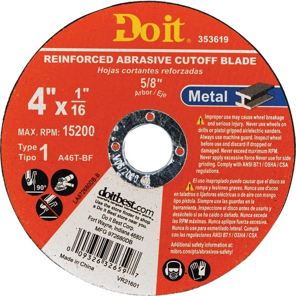- Do it Type 1 4 In. x 1/16 In. x 5/8 In. Metal Cut-Off Wheel