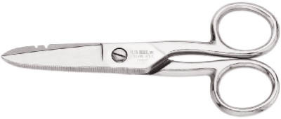 Electrician Scissors, Upper Blade Has Notches For Stripping 19 & 23 Gauge Wire, Designed For Telecom & Electrical Application, Heavy Duty Use, Strong, Tough Tempered Steel, Nickel Plated Finish Resists Corrosion, Strong, Tough Tempered Steel, Screw Hinge Permits Adjustment, Serrated Lower Blade Reduced Slippage. vendor ID: 18077 Price/Unit: 19.99EA model: 2100-7