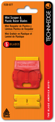 Ergonomic, Plastic Scraper With 5 Plastic Blades, Lightweight, Plastic Handle Great For Hard To Reach Areas, Replace With Standard .009" Single Edge Blades Or Plastic Razor Blades, Removes Paint, Blue, Adhesive Stickers & Labels Without Damaging Or Scratching The Finish Of Metals, Furniture, Walls, Windows, Etc., Blades Have 2 Beveled Edges That Get Underneath Material For Clean Removal. vendor ID: 4051 Price/Unit: 1.99EA model: TE20-077