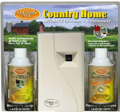 Country Vet, Flying Insect & Odor Kit, Includes Wall Dispenser, 1 Metered Fly Spray & 1 Metered Air Freshener, 30 Days Control Of Insect/Odor, Fully Automatic Control Of Flies, Mosquitoes & Moths As Well As An Air Freshener. vendor ID: 81349 Price/Unit: 59.99EA model: 321968CV4A