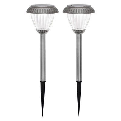 Four Seasons Courtyard, 2 Pack, Pewter Finish, Solar Pathway Light, Metal Construction, Glass Ribbed Lens, Powered By Ultra High Efficiency Monocrystal Solar Panel, Photo Control, Long Lasting Weatherproof Design, Automatically Turns On & Off, 5 Lumens, 1 Bright White LED Each Light, 8 Hours Of Run Time With A Fully Charged Battery, Uses One 900 Mah Nickel Metal Hydride Rechargeable Battery, Included. vendor ID: 88765 Price/Unit: 19.99EA model: RS33MA-R5-PT-2