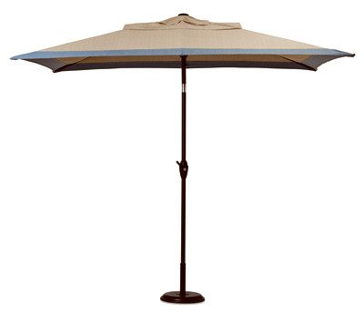 Four Seasons Courtyard, 7' x 9', Concord Umbrella, UV -Protected Olefin Canopy With A Durable Steel Frame, Brown Baked On Powder Coated Finish, Tan Main Fabric With A Blue Border, Limited 1 Year Warranty, Steel 70%, Olefin 30%, 83.9"L x 107.9"W x 98.4"H. vendor ID: 7754 Price/Unit: 149.00EA model: 820.067.002