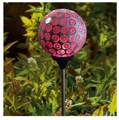 Four Seasons Courtyard, Lilac Mosaic Sphere Solar Stake Light, Colorful Glass, Stainless Steel Stake, 3.93" Diameter Of The Sphere, Overall Height 32", Shimmers In The Day & Glitters At Night, Energy Saving Color Changing LED, Includes 1 "AA" 300Mah Ni-Mh Rechargeable Battery, Automatically Turns Auto/Off, No Operating Costs Or Wiring, Run Time 6-8 Hours On Full Charge, For Replacement Battery Use TV #203-290. vendor ID: 6806 Price/Unit: 12.99EA model: S120901314-L