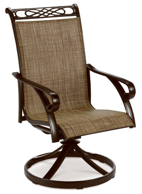 Four Seasons Courtyard, Madera, Sling Swivel Rocker, Rust-Proof Aluminum, Low Maintenance Textaline In A Neutral Taupe Fabric, Comfortable Curved Arms, Cast Header Nicely Compliments Matching Dining Table, Matching Spring Chair, Dining Table, Market Umbrella & Umbrella Base, Not Included, Individual Rocker Dimensions: 27.95"L x 23.74"W x 41.14"H, Weight Capacity 250 LB. vendor ID: 2393 Price/Unit: 149.00EA model: ADV07701H60