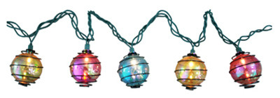 Four Seasons Courtyard, 10 Light, Multi Colored Swirling Globe String Light Set, 10 Mini Bulbs Included, 94" Overall Wire Length, Green Cord, 24" Lead In, 7" Bulb Spacing, 7" Lead Out, Indoor & Outdoor Use With End Outlet, 4 Spare Bulbs, & 1 Spare Fuse Included, UL Listed, Clear Acetate Box. vendor ID: 6774 Price/Unit: 12.99EA model: RU-10563-9