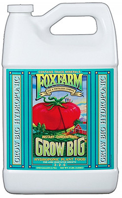 Foxfarm, Gallon, Grow Big Hydro, Liquid Plant Food Concentrate, Delivers A Full Spectrum Of Micro Nutrients & Allows For pH Adjustment Without Nutrient Lock Up, Nutrient Solution Emphasizes The Maximum Genetic Growth, Flowering, & Fruiting Characteristics Of Each Plant. vendor ID: 75077 Price/Unit: 74.99EA model: FX14011