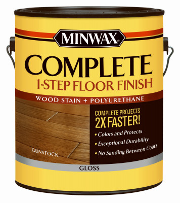 Minwax Complete, Gallon, Gun Stock, Gloss, 1-Step Floor Finish, 2 In 1 Stain & Protective Finish That Provides Superior Durability For Hardwood Floors, For Use Over Bare Wood Floors Or Over An Existing Polyurethane Finish, No Sanding Between Coats, Complete Projects 2X Faster. vendor ID: 38422 Price/Unit: 69.99EA model: 672080000