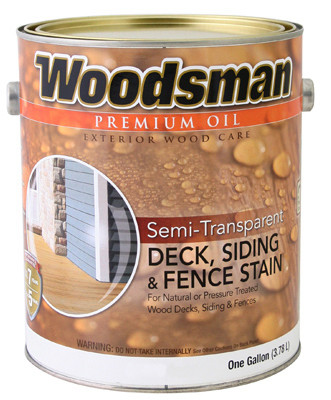 STOVN, Woodsman, Gallon, Neutral Base, Semi-Transparent Oil Deck & Siding Stain, VOC Compliant In OTC & CARB, Replaces Linseed Oil With Acrylic Core Shell Oil Alkyd Technology, Improved Dry Time Over A Variety Of Substrates, Much Improved Exterior Durability, Improved Chalk Resistance, Improved Early Water Resistance, Uses Advanced Transparent Oxide Technology, Excellent Water Hold Out, Higher Solids Formulations, Use On All Exterior Wood Trim, Siding & Decking Dependent On The Product Selected, VOC Less Than 250 Grams Per Litre. vendor ID: 51896 Price/Unit: 32.99EA model: STOVN-GAL