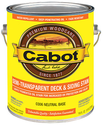 Gallon, Neutral, Semi-Transparent Stain Base, Deep Penetrating, Linseed Oil Based Stain That Will Beautify & Protect Exterior Wood, Lightly Pigmented Stain Will Enhance The Natural Beauty Of The Wood By Allowing The Grain, Texture & Color Variations Within The Wood To Show Through, Water Repellent When Properly Applied, Won't Crack, Peel Or Blister, Item May Be VOC Restricted In Certain Areas, Please Refer To The Restricted Items Report On MOL For A List Of Items That Are Restricted In Your Area. vendor ID: 3228 Price/Unit: 39.99EA model: 0306-07