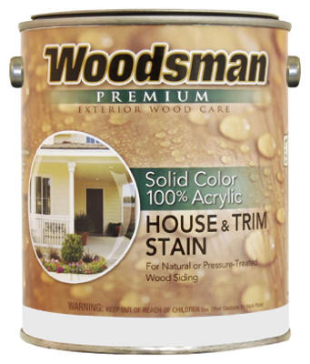 SCA1, Premium Woodsman, Gallon, White, Exterior Solid Color 100% Acrylic House & Trim Stain, Water Repellant Formula, Enhances Wood Appearance, All Acrylic Mildew & Fade Resistant Formula, Cleans Up With Soap & Water, VOC Less Than 100 Grams Per Litre. vendor ID: 51896 Price/Unit: 24.99EA model: SCA1-GL