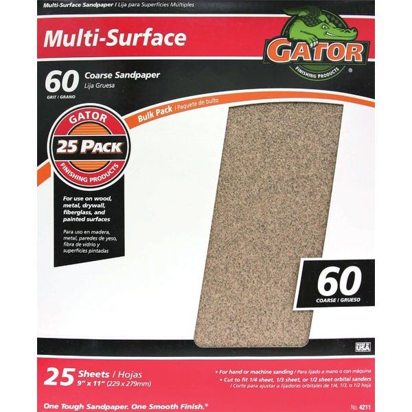 - Gator Multi-Surface 9 In. x 11 In. 60 Grit Coarse Sandpaper (25-Pack)