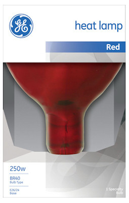 GE, 250R40-10, 250W, 120V, Red, Infrared Heat Reflector Light Bulb, Heat Resistant Pyrex Glass, Maximum Overall Length 6-9/16", Medium Base, 2200 Lumens, 5000 Hours. vendor ID: 18655 Price/Unit: 12.99EA model: 37771