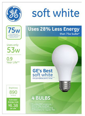 GE, 53A/W/H, 4 Pack, 53W, Soft White, A Line, Halogen Bulb, 1,050 Lumens, 1,000 Hours Rated Life, 3" MOL, Medium Base, Energy Saver Bulb Gives Equivalent Lumens To A Standard 75W Incandescent. vendor ID: 18655 Price/Unit: 6.99EA model: 66248