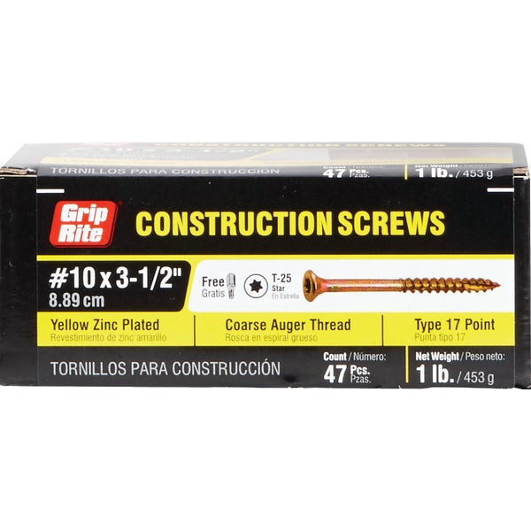 Grip-Rite #10 x 3-1/2 In. Flat Head Star Gold Construction Wood Screw (52 Ct. 1 Lb.)
