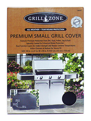 Grill Zone, 58" x 21" x 44", Grill Cover, 100% PVC Free, Dual Function Layers For Added Strength & Weather Resistance Specially Coated For Enhanced Water Protection Material Resists Extreme Temperatures Protects Your Property From Dirt, Dust, Pollen, Sap & Rain, Fits Grill Zone Grill TV #204-379, Lifetime Warranty. vendor ID: 7796 Price/Unit: 34.99EA model: 00386TV