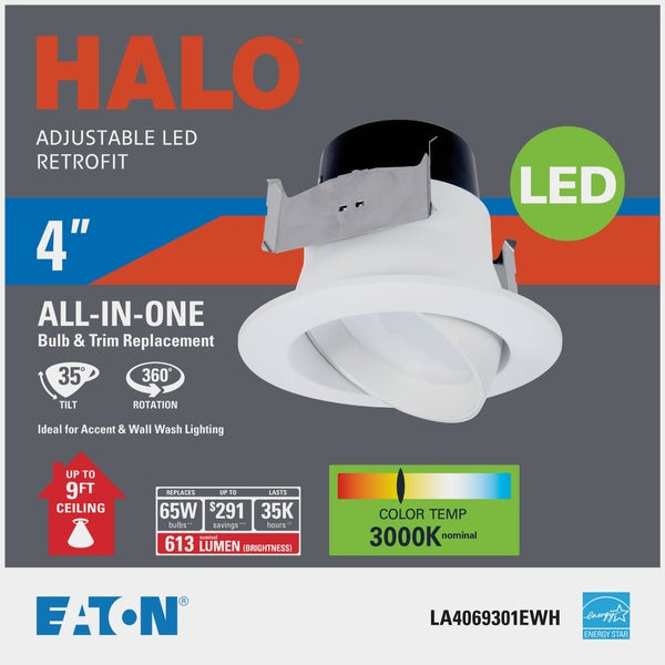 Click the button below to add the Halo 4 In Retrofit Gimbal 3000K LED Recessed Light Kit 611 Lm. to your wish list.