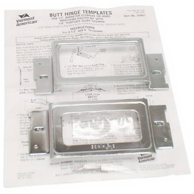 Wood Crafters Series, Hinge Mortising Template Set, For Mortising Door & Jamb For 3-1/2" & 4" Butt Hinges, Includes Templates For The 2 Most Popular Interior & Exterior Hinge Sizes, Requires Use Of Bosch RA1121, Bushings Not Included, Boxed. vendor ID: 23093 Price/Unit: 7.99EA model: 23457