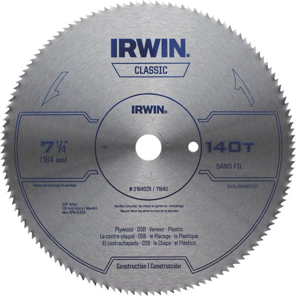 - Irwin Steel 7-1/4 In. 140-Tooth Smooth Finish Ripping/Crosscutting Circular Saw Blade Bulk