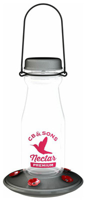 Jersey Hummingbird Feeder, Holds 18 Fluid OZ, Unique Vintage Milk Bottle Style, Logo Screen Printed On The Bottle For A Retro Feel, Base Disassembles For Cleaning To Reduce Or Eliminate Spillage. vendor ID: 5372 Price/Unit: 19.99EA model: 67