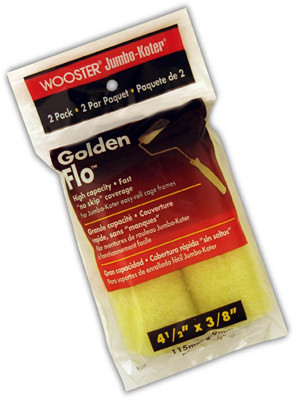 Jumbo-Koter Golden Flo, 2 Pack, 3/8", 4-1/2", Yellow Fabric Roller Cover, Offers Fast Coverage, Low Shed, High Paint Pickup, Use With Flat Or Eggshell Paints, Stains, Waterproofing, For Use With Jumbo-Koter System. vendor ID: 83402 Price/Unit: 2.99EA model: RR315-4 1/2