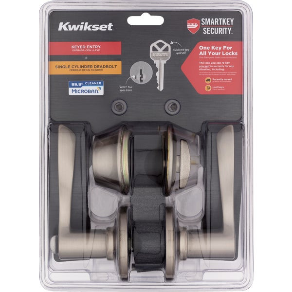 - Kwikset Balboa Satin Nickel Deadbolt and Lever Combo with Smartkey