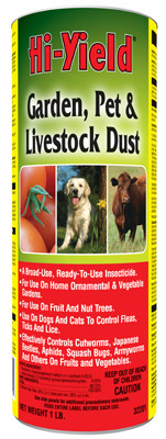 VPG Hi-Yield, LB, Garden, Pet & Livestock Dust, Low Odor Vegetable, Ornamental, Rose, Flower, Fruit, Pet & Livestock Insecticide, Provides Both Repelling & Killing Action Of Over 60 Insects, May Be Applied Until One Day Before Harvest On Listed Vegetables, Controls Colorado Potato Beetles & Listed Loppers, Beetles & Borers On Listed Plants, Controls Hornflies, Lice, & Face Flies On Beef & Dairy Cattle & Horses, Controls Fleas, Ticks, & Lice On Cats & Dogs. vendor ID: 5681 Price/Unit: 3.99EA model: 32201