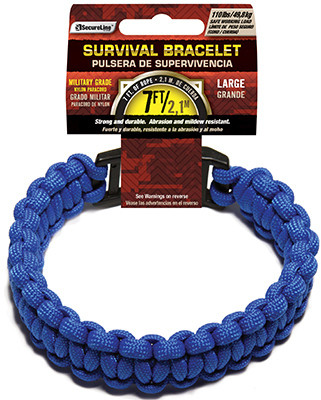 Large, Blue, Survival Bracelet, Strong & Durable, Abrasion & Mildew Resistant, Deploys To Over 7' Of Rope When Necessitated, 110 LB Safe Working Load. vendor ID: 81729 Price/Unit: 5.99EA model: NPCB550BLL