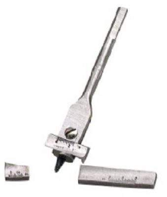 Lockhead Drill Press Adjustable Wood Bit, Cuts: 5/8"-1-3/4", 9/32" Shank Size, 5-1/2" Overall Length, Wedge Type Blade Lock & Slow Feed SScrew Point, Special Precision Ground Shank Has 3 Equally Spaced Flats For Use In Drill Presses Having 3 Jaw Chucks, Pouched. vendor ID: 1776 Price/Unit: 29.99EA model: 44801