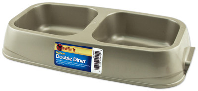 Medium, Plastic, Raised Double Pet Bowl, For Food & Water. vendor ID: 1595 Price/Unit: 2.49EA model: 00442