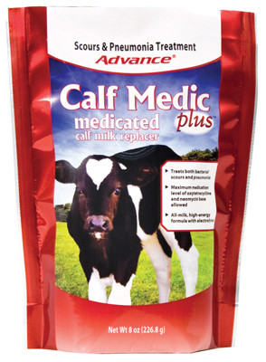 Advance Calf Medic Plus, 8 OZ, Milk Replacer, Instant Mixing, 20% Protein, 25% Fat, 300 IU Vitamin E, Single Feeding Size, All Milk Protein Formula Medicated For The Treatment Of Calf Scours & Pneumonia, Formulated To Supply Needed Nutrients & Vital Energy, As Well As Lost Electrolytes. vendor ID: 8243 Price/Unit: 3.49EA model: 0094300843