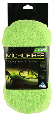 Peak, Microfiber Sponge With Scrubber, Use Wet With Plenty Of Car Wash Soap & Water, Microfiber Weave Lifts Dirt From The Surface, While Washing The Vehicle, Be Sure To Wash The Sponge Frequently To Flush Out Dirt & Debris, Will Not Scratch Surfaces, However, It Can Pick Up & Trap Particles That Can Scratch, Frequently Wash Your Cloth To Release Abrasive Particles, Hemmed Edges May Scratch Delicate Surfaces, Please Test In An Inconspicuous Area Before Use. vendor ID: 59154 Price/Unit: 3.99EA model: PKC0FE