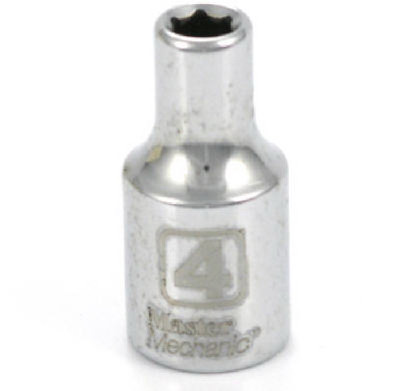 Master Mechanic, 1/4" Drive, 4 mm, 6 Point, Shallow Socket, Chrome Vanadium Steel, Surface Drive, Design Contacts The Flat Surfaces On Fastener Instead Of Corners, Reduces Slippage, Reduces Rounding Of Fastener & Will Still Grab On Slightly Rounded Fasteners. vendor ID: 4469 Price/Unit: 2.19EA model: 199185