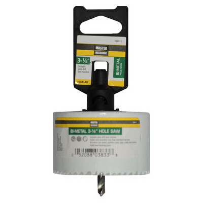 Master Mechanic, 1 Piece 3-1/8" Bi-Metal Hole Saw, M3 High Speed Steel Cut Edge, 1-7/8" Depth Of Cut, 4/6 Variable Tooth Pattern Provides Less Vibration, Delivering Faster, Smoother Cuts Then Conventional Hole Saws, Features Built In 3/8" Mandrel Which May Be Used With 3/8" Or Larger Drill, Recommended For Cutting Soft Or Hard Wood, Nail Embedded Wood, Stainless Steel, Pipe, Rubber & Conduit, Pilot Drill Included, Carded. vendor ID: 6978 Price/Unit: 21.79EA model: 698912