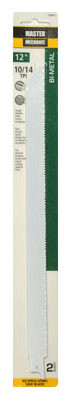 Master Mechanic, 2 Pack, 12" x 10/14 TPI, Bi-Metal, Reciprocating Saw Blade, 1/2" Shank, All Purpose, Shatterproof, Bi-Metal Construction For Flexibility, Cobalt Content & Matrix II Cutting Edge Reduces Heat & Wear Resistance, Designed To Cut Stainless Steel, Wood, Pipe & Conduit, Carded. vendor ID: 6978 Price/Unit: 8.99EA model: 698645