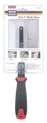 Master Mechanic, 3 In 1 Multi Saw, Double Ground Teeth, Rubber Grip Multi-Function Handle With Interchangeable Blades, Extra Large Tension Nut Makes Blade Changes Easy, Ideal For Close Quarters Or Tight Fits, Handle Accepts All Standard Reciprocating Blades. vendor ID: 4351 Price/Unit: 12.99EA model: 176189