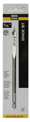 Master Mechanic, 5/16", Spade, Wood Boring Bit, Micro-Groove Point & Cutting Edges With Extended Spurs For Faster, Cleaner Boring Action, Heat Treated For Extra Strength, Forged In 1 Piece From Special Grade Tool Steel. vendor ID: 6978 Price/Unit: 2.59EA model: 521275