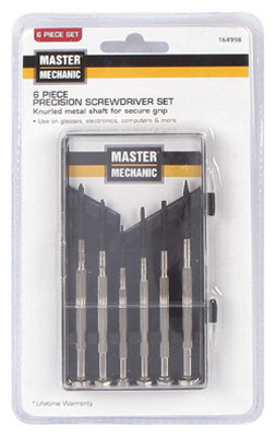 Master Mechanic, 6 Piece, Precision Screwdriver Set, Knurled Metal Shaft, Plastic Case. vendor ID: 4351 Price/Unit: 2.99EA model: 164998