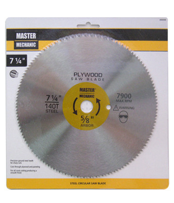 Master Mechanic, 7-1/4", 140 Tooth, Steel, Plywood/Paneling Blade, For Cutting Plywood, Paneling, Veneer & Other Thin Materials, Manufactured To Exacting Standards For Consistent Performance. Carded. vendor ID: 6978 Price/Unit: 8.99EA model: 494948