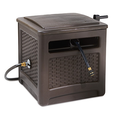 Mocha, Contemporary Wicker Look, Hideaway Elite Hose Reel, 5/8" x 225' Hose Capacity, Smart Trak Guide Tracks Hose Neatly Onto Reel, Aluminum Connections Prevent Leaking & Cross Threading, No Leak Guarantee, Resin Construction, Comes Fully Assembled, 26"W x 21"D x 21.5"H. vendor ID: 6072 Price/Unit: 99.99EA model: SMT205WJ8