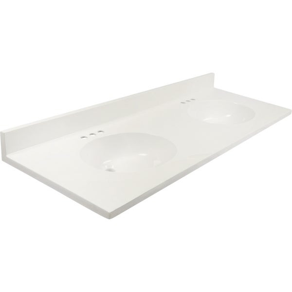 - Modular Vanity Tops 61 In. W x 22 In. D Solid White Cultured Marble Flat Edge Double Sink Vanity Top with Oval Bowl