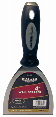 Master Painter Best, 4", Stiff Wall Scraper, Specially Designed With Ergonomically Engineered Handles To Decrease Hand Fatigue, Extra Sturdy, High Carbon Steel Blades Resist Rust & Extend Through Handles For Maximum Strength & Durability, Durable Brass Plated, Solid Steel, Nail Setting Head Can Be Used For Setting Nails & Other Hammering Jobs. vendor ID: 38877 Price/Unit: 9.99EA model: 6213TV