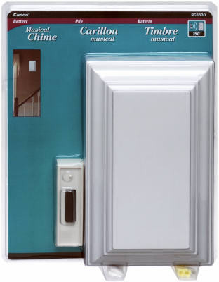 Wireless/Battery Operated Musical Door Chime, With White Cover, Up To 150' Operating Range, Adjustable Volume Control, Mounts Vertically Or Horizontally, Plays 13 Sounds, Different Sounds For Front & Back Door, Add Additional Button, Scrolling Button On Push Button Allows To Change The Tune Of Door Chime, 32 Selectable Codes, Automated Low Battery Alert, Button Uses Two 3V Lithium Batteries Size Cr2032, Included, Chimes Uses 4 "C" Cell Alkaline Batteries, Not Included. vendor ID: 17418 Price/Unit: 36.99EA model: RC3530