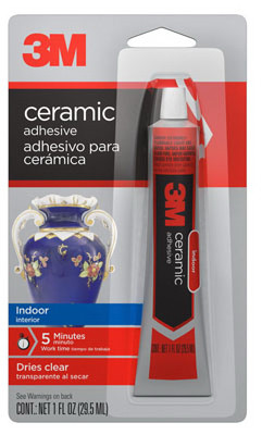 OZ, Indoor Ceramic Adhesive, Works Great On Ceramic, Glass & Wood, Dishwasher Safe, Dries Clear & Works On Porous & Non Porous Surfaces. vendor ID: 38398 Price/Unit: 3.29EA model: 18040