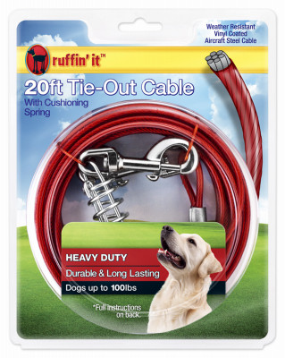 Pet Expert, 20', Heavy Weight Dog Tie Out, Constructed From 1700 LB Break Strength Galvanized Steel Aircraft Cable, Coated With Double Thick UV Protected Clear Vinyl, Movable Iron Swivel Snaps At Both Ends, Spring On Cable For Added Strength. vendor ID: 1595 Price/Unit: 11.99EA model: PE223856
